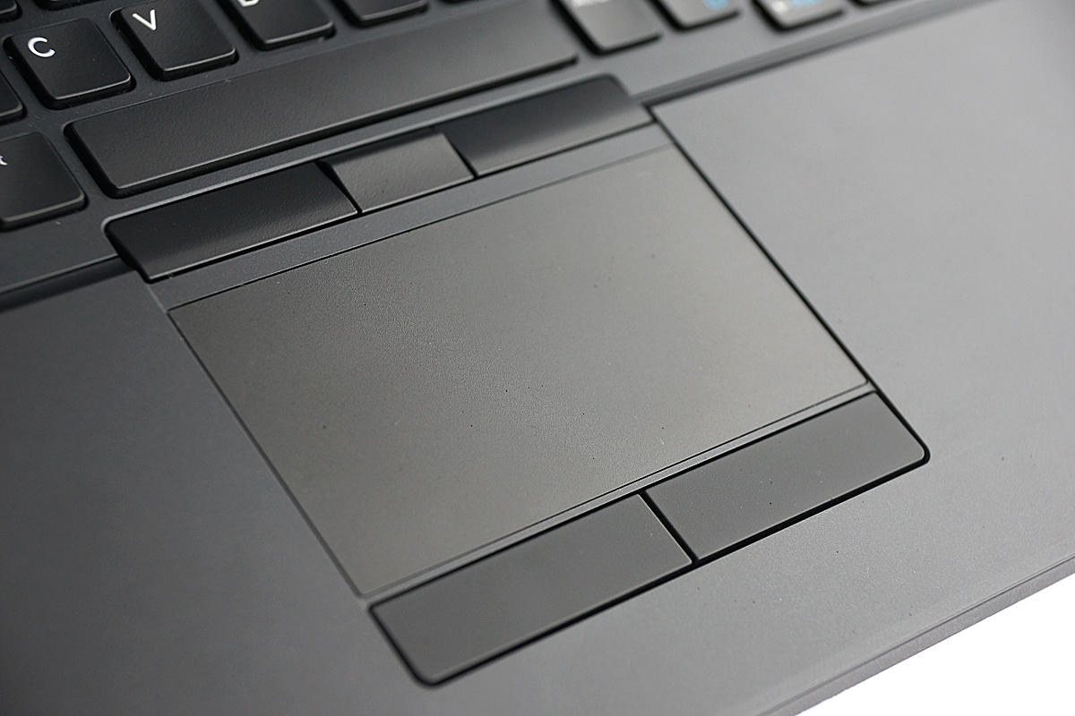 Phần Touchpad trên Laptop Dell Latitude E5550 cũng được đơn giản hóa, giữa hai phím đại diện cho chuột phải và chuột trái được ngăn cách chỉ với một dấu gạch nhỏ, phần còn lại được phủ một lớp sơn mịn có tác dụng giúp thao tác chạm nhanh và nhạy hơn.